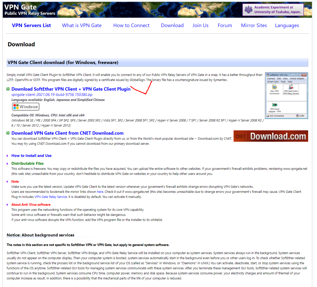 Download VPN Gate Client download (for Windows, freeware) Simply install VPN Gate Client Plugin to SoftEther VPN Client. It will enable you to connect to any of our Public VPN Relay Servers of VPN Gate in a snap. It has a better throughput than L2TP, OpenV