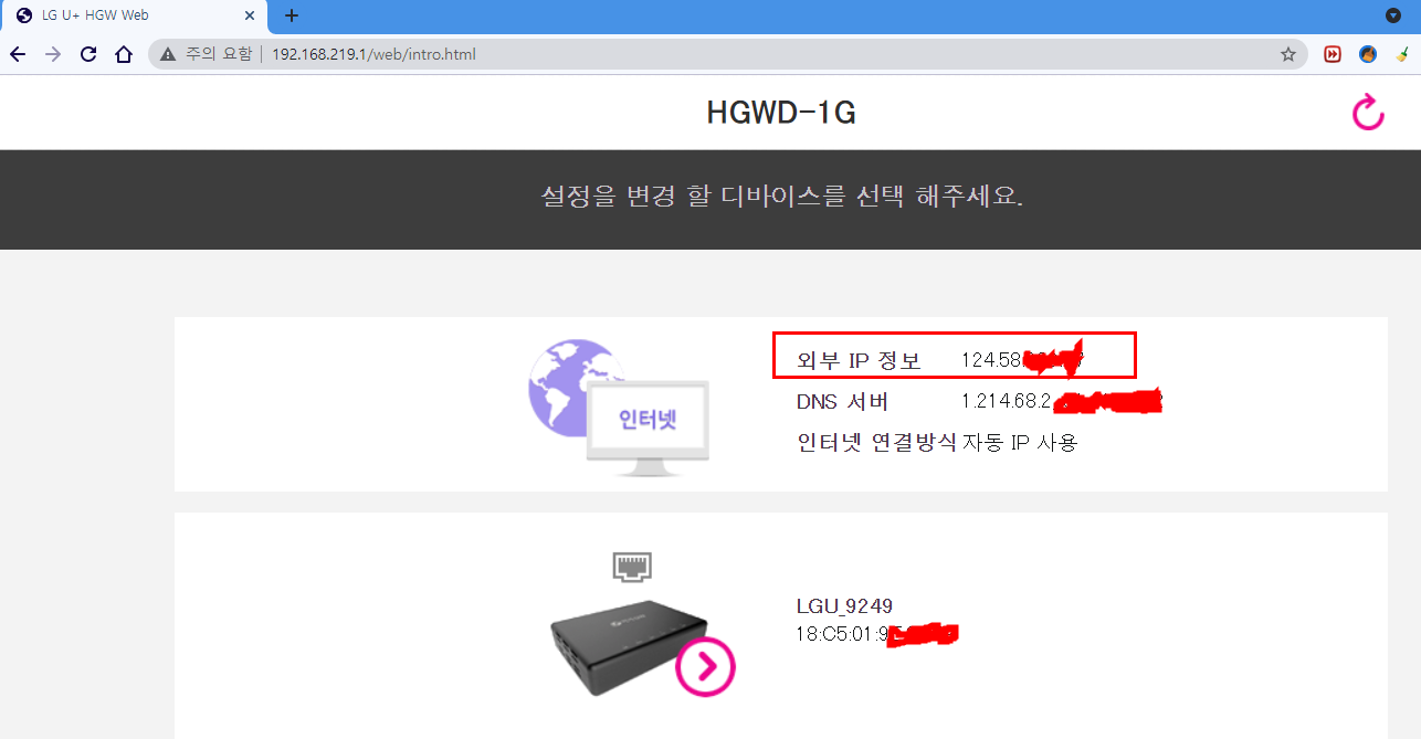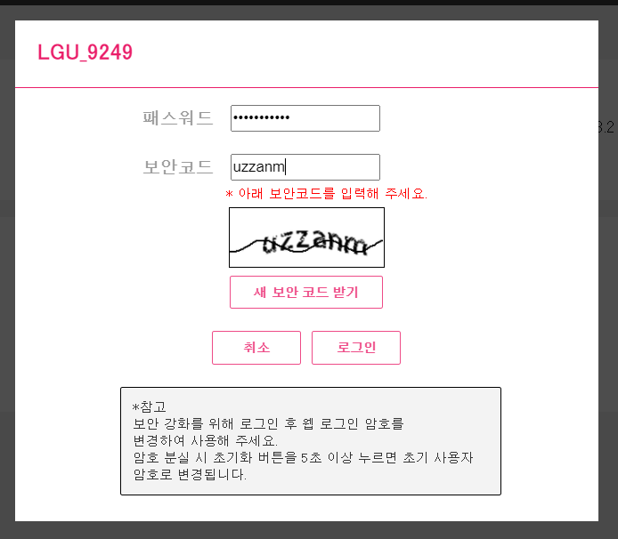 2. LG 유플러스 공유기 기준, 관리자 페이지 접속