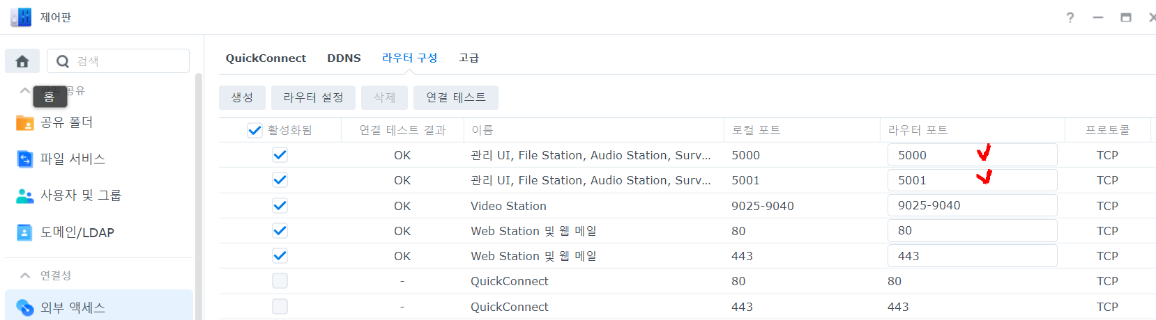 ㄴ DSM 외부 엑세스 라우터 구성 에서
