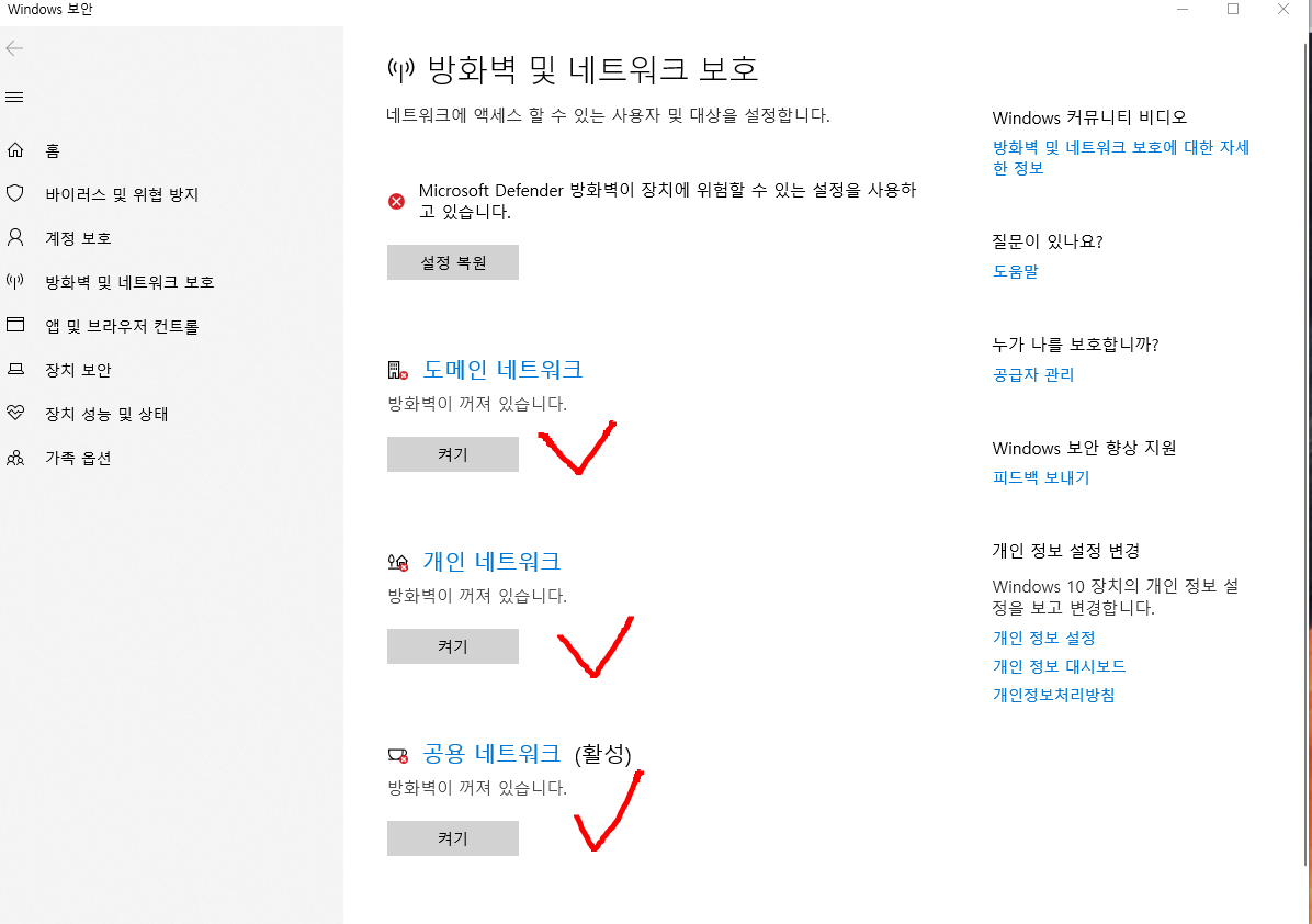 네트워크 방화벽 설정을