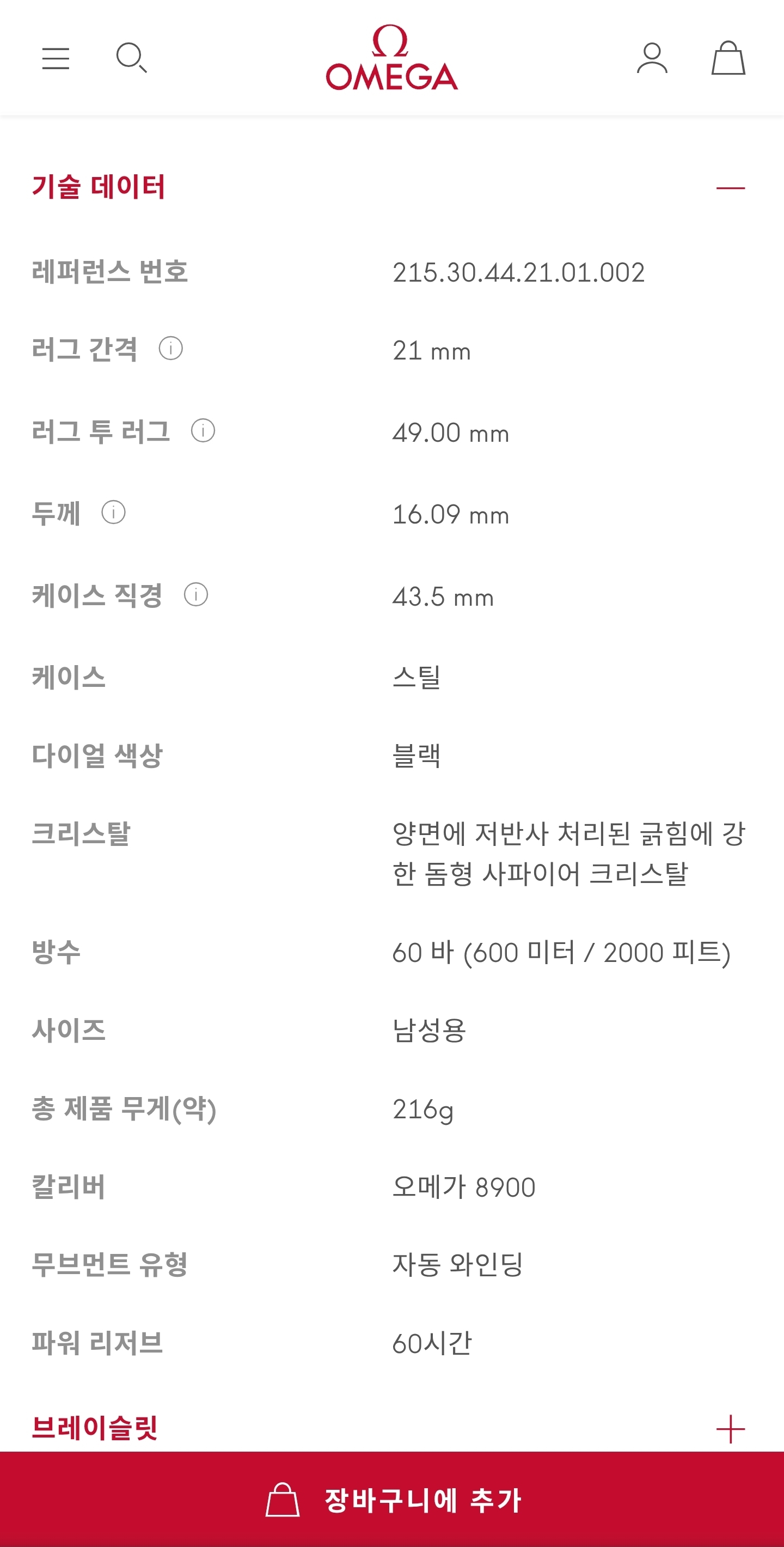 공식홈페이지에서 1,060만 원인 오메가 씨마스터