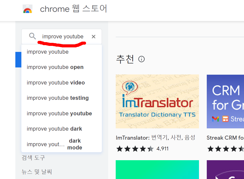 "improve youtube" 검색 및 설치